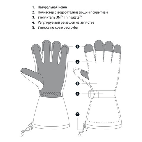 • Утеплитель 3M Thinsulate позволяет использовать перчатки при температуре до -30 °С
