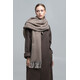 Широкий палантин с едва заметным узором плетения открывает простор фантазии — его можно использовать как шарф, головной убор или декоративный элемент для верхней одежды.