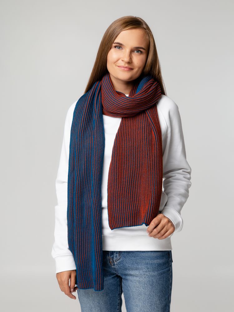 Двухсторонний шарф из полушерстяной пряжи позволяет играть со стилем верхней одежды, не меняя при этом аксессуара, — просто выбирайте цвет настроения или комбинируйте два в одном!