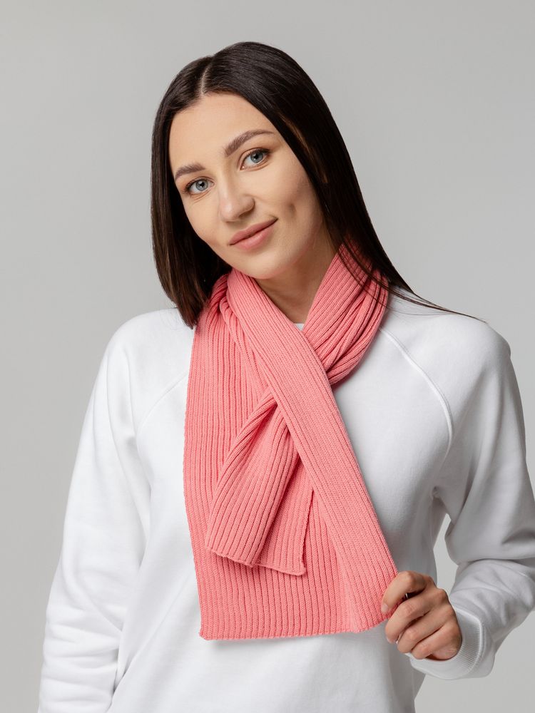 Однослойный шарф фактурной вязки с отверстием для быстрого и удобного завязывания.