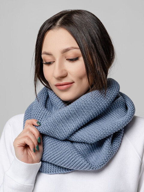 Однослойный и очень плотный шарф-снуд крупной вязки.