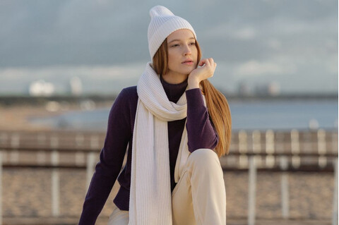 В шапке модного фасона Alpine можно покорять горные вершины, а можно — сердца поклонников. Выполненная с высоким содержанием шерсти альпака и мериноса, шапка сохраняет свою первоначальную форму долгое время.