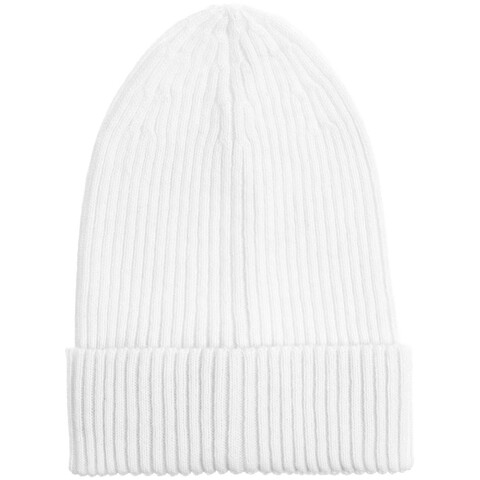 Однослойная шапка фактурной вязки с отворотом.