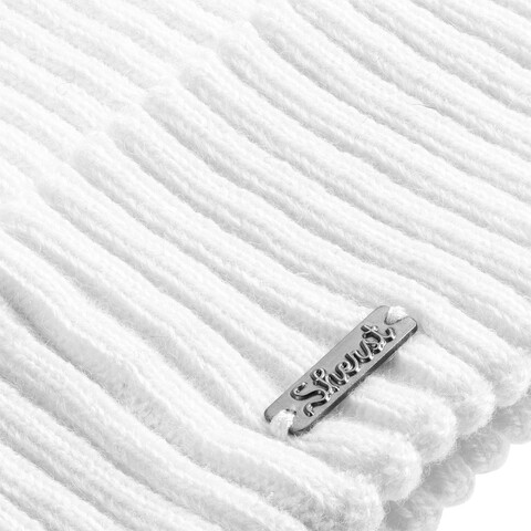 Металлический шильд с названием бренда расположен у заднего шва шапки. Это оставляет место спереди для пришива лейбла или шильда с логотипом заказчика.