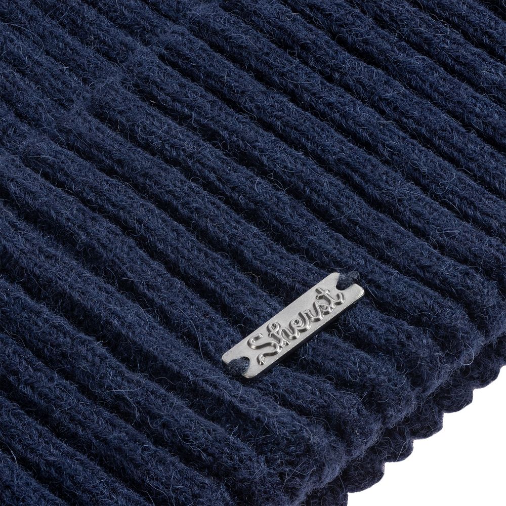 Металлический шильд с названием бренда расположен у заднего шва шапки. Это оставляет место спереди для пришива лейбла или шильда с логотипом заказчика.