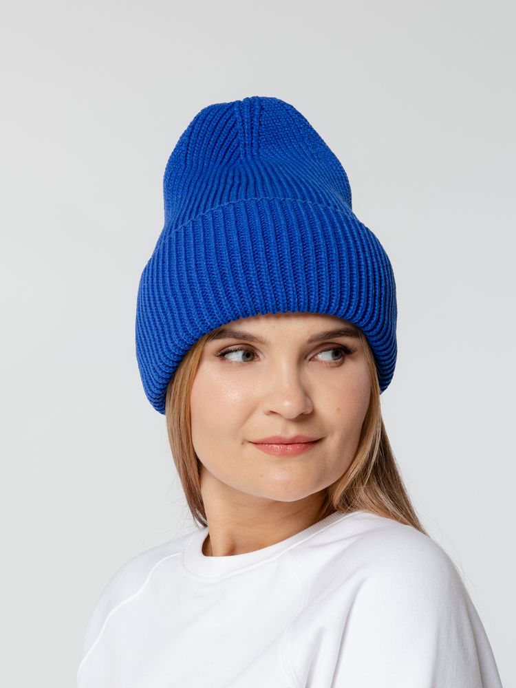 Удлиненная шапка объемной фактурной вязки с отворотом. Поставляется в пакете с липким краем.