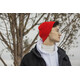 Вязаная шапка с козырьком Peaky, красная (кармин)