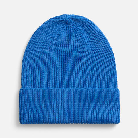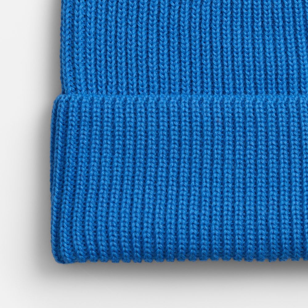 Однослойная шапка фактурной вязки с отворотом.