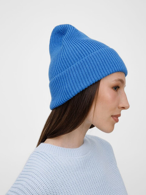 Удлиненный силуэт шапки Nobilis Mono из мягкой полушерстяной пряжи с широким отворотом создает стильный современный образ, а фактурная вязка добавляет объем и выразительность.