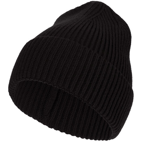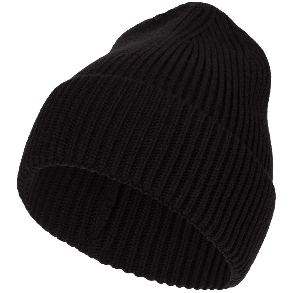 Однослойная шапка рельефной вязки с отворотом.