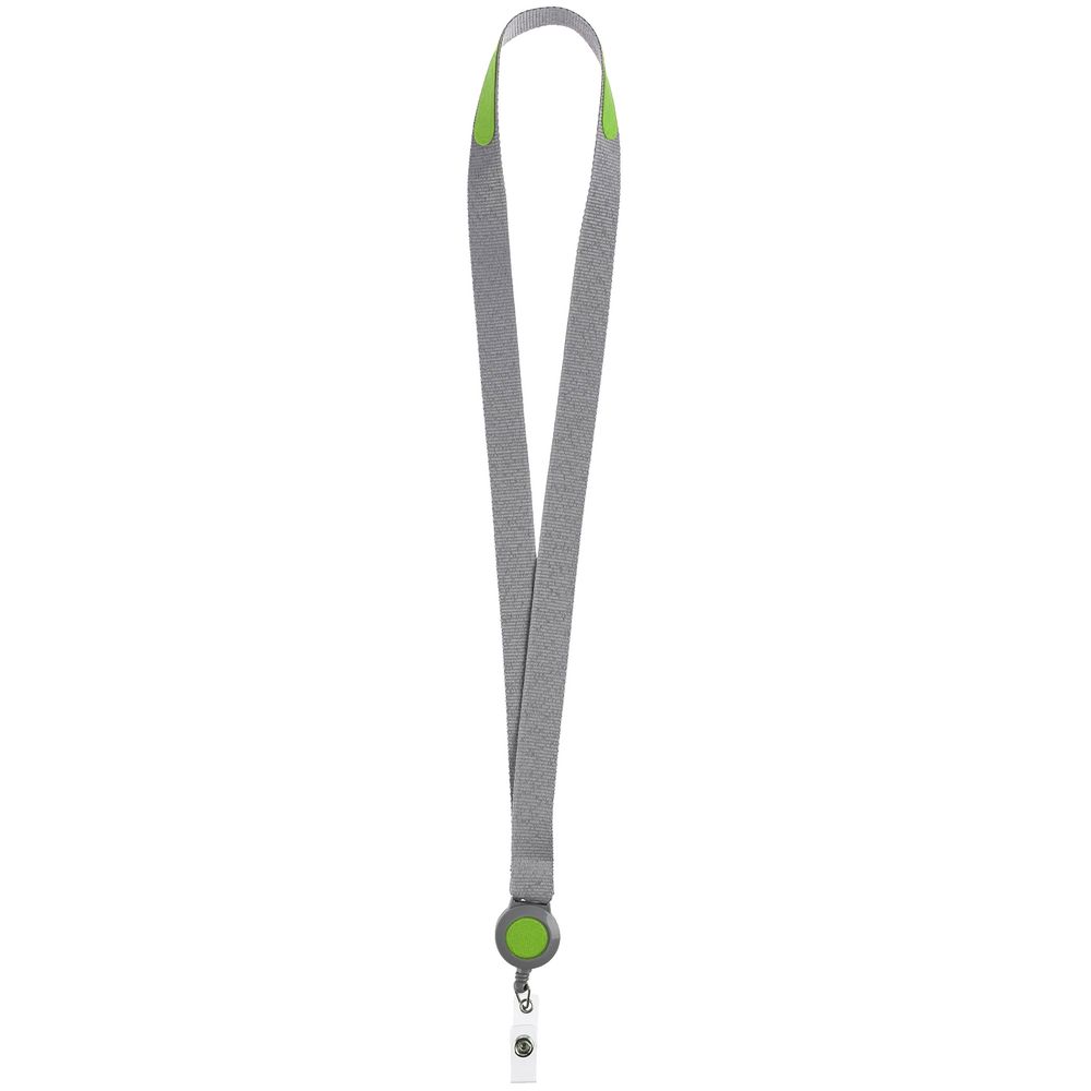 Лента для бейджа с ретрактором Devon, серая с зеленым
