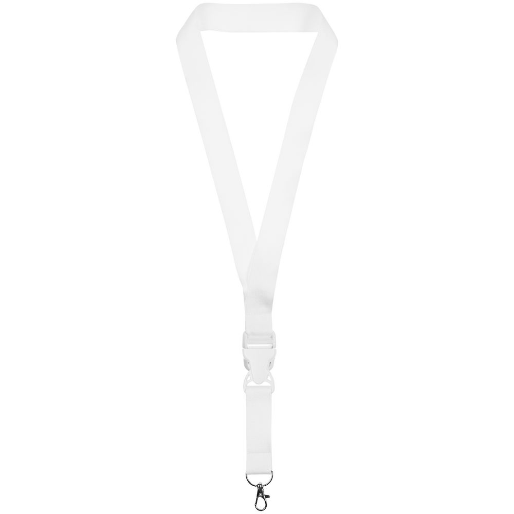 Лента для бейджа или пропуска с карабином и межъярусным замком. Такой замок позволит быстро отстегнуть часть ленты, чтобы приложить интерактивный бейдж или пропуск к считывателю, не снимая ленту через голову.