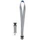 Лента для бейджа или пропуска с карабином и межъярусным замком. Такой замок позволит быстро отстегнуть часть ленты, чтобы приложить интерактивный бейдж или пропуск к считывателю, не снимая ленту через голову.