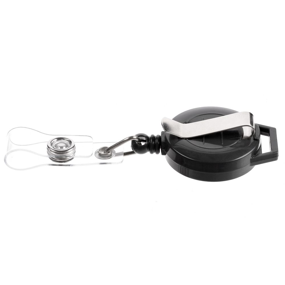 На ретрактор можно поместить бейдж, визитку или магнитную карту. В корпусе спрятан сворачивающийся шнур, который позволяет при необходимости демонстрировать содержимое держателя, не снимая его.