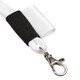 Шнурок дополнен резинкой с биркой под печать и металлическим карабином. Бирка может использоваться в качестве держателя для ручки.