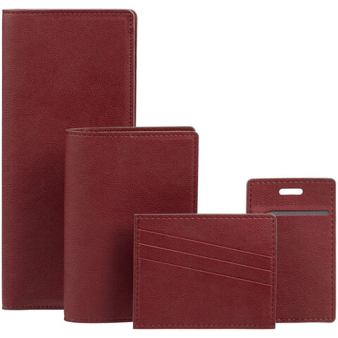 Чехол выполнен из материала Petrus, красный РР, дополнен окрашенным срезом края и внутренним карманом из серого картона.