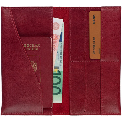 Два больших отделения для купюр и документов Четыре кармана для пластиковых карт Дополнительный карман для билетов на самолет или поезд