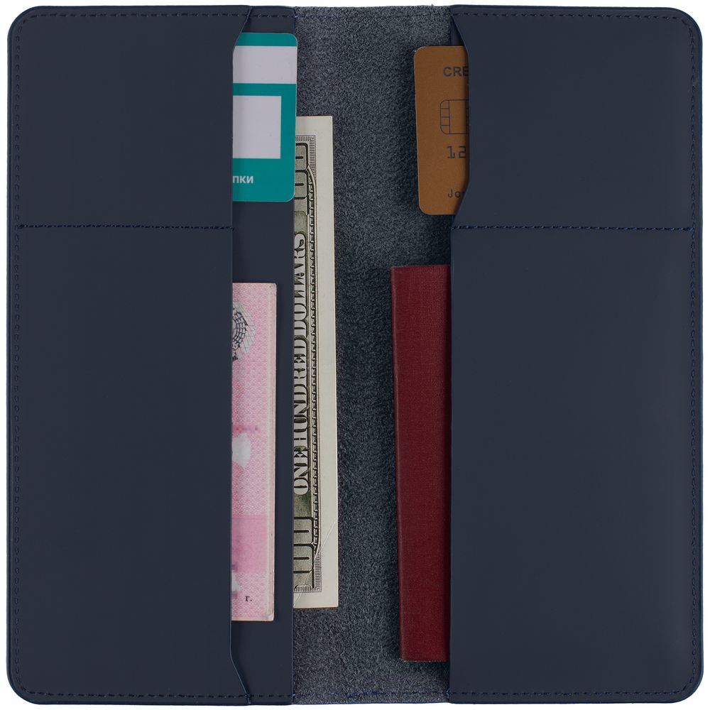 Два кармана для купюр и документов Два кармана для пластиковых карт Дополнительный карман для билетов на самолет или поезд Упакован в конверт из ПВХ.