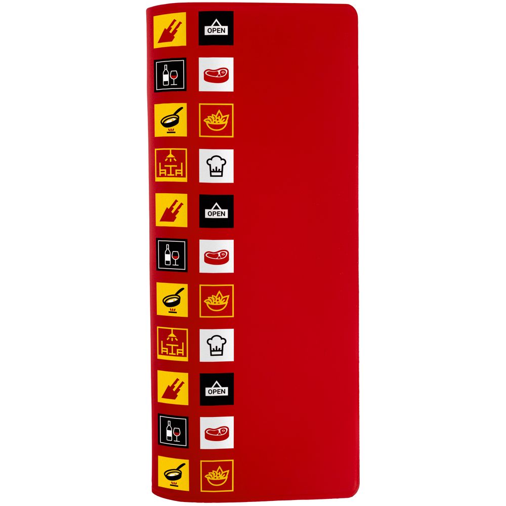 В каждой части общего рисунка изображены главные символы кафе и ресторанов.Органайзер имеет 5 отделений: для билетов, паспорта, визиток или кредитных карт.