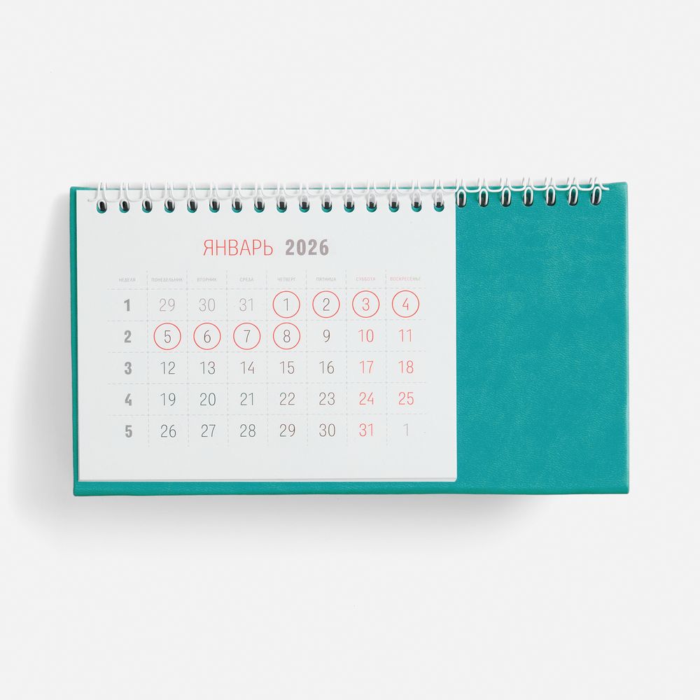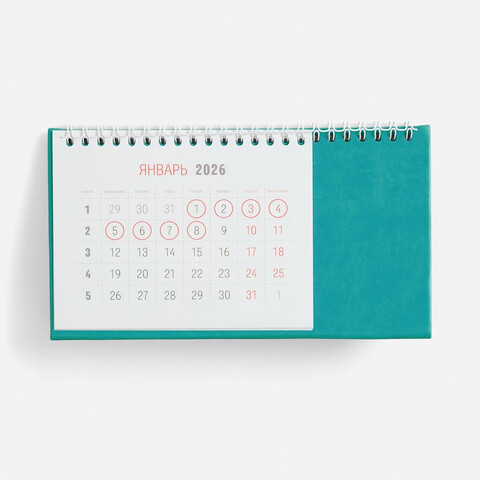 Календарь на 2026 год. Настольный, перекидной календарь-домик выполнен из материала Latte, цвет морской волны II.