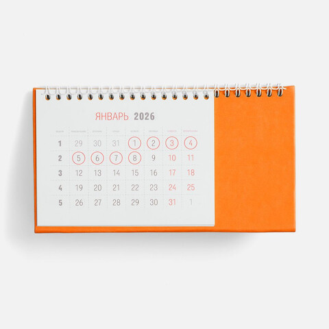 Календарь на 2026 год. Настольный, перекидной календарь-домик выполнен из материала Latte, оранжевый ОО.