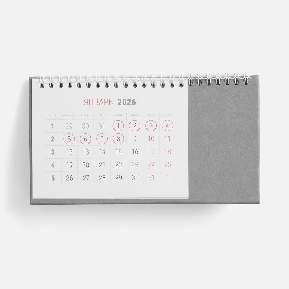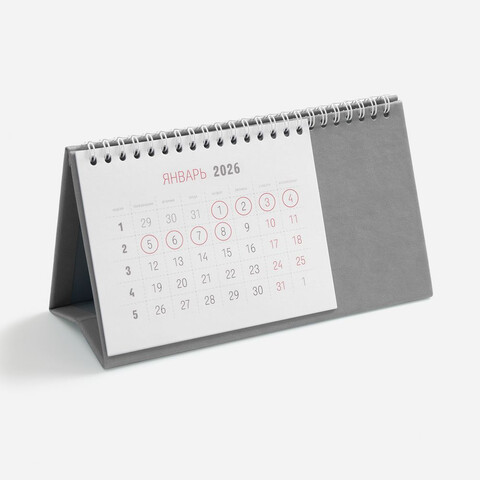 Календарь на 2026 год. Настольный, перекидной календарь-домик выполнен из материала Latte, серый СС.