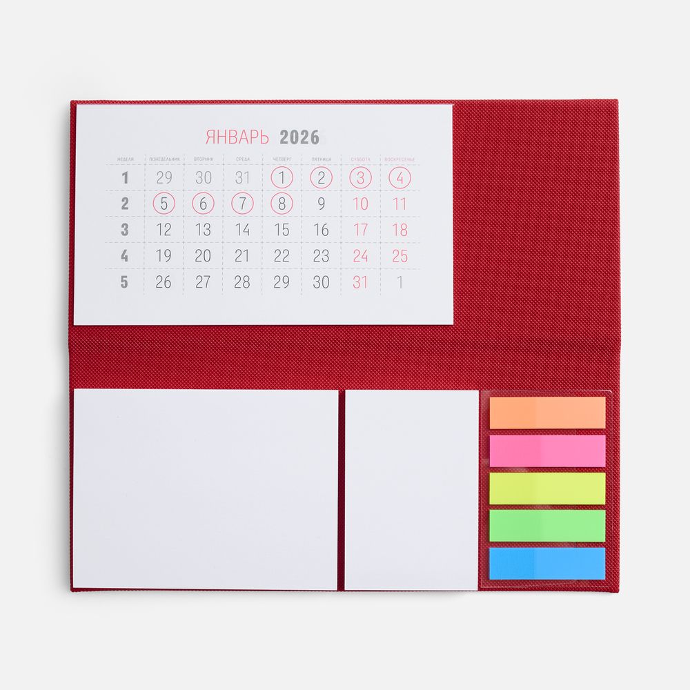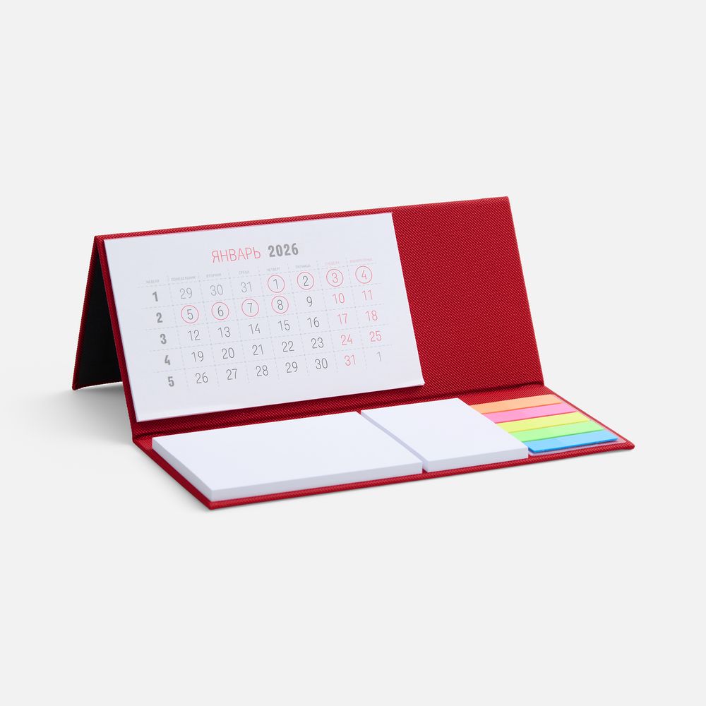 Календарь на 2026 год. Настольный календарь-домик из материала Canyon, красный РР. Календарь 14,5х8,6 см, 12 листов; 2 блока с клеевым слоем 10х7,5 см и...