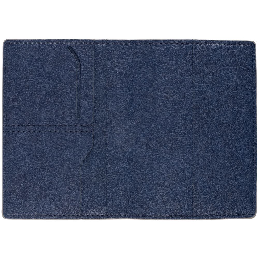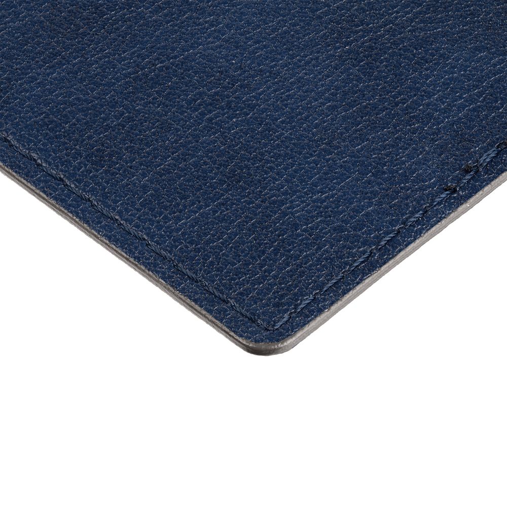 Обложка выполнена из материала Petrus, синий НН. Срез обложки окрашен в серый цвет. Имеет основное отделение для паспорта и 2 кармана для визиток или...