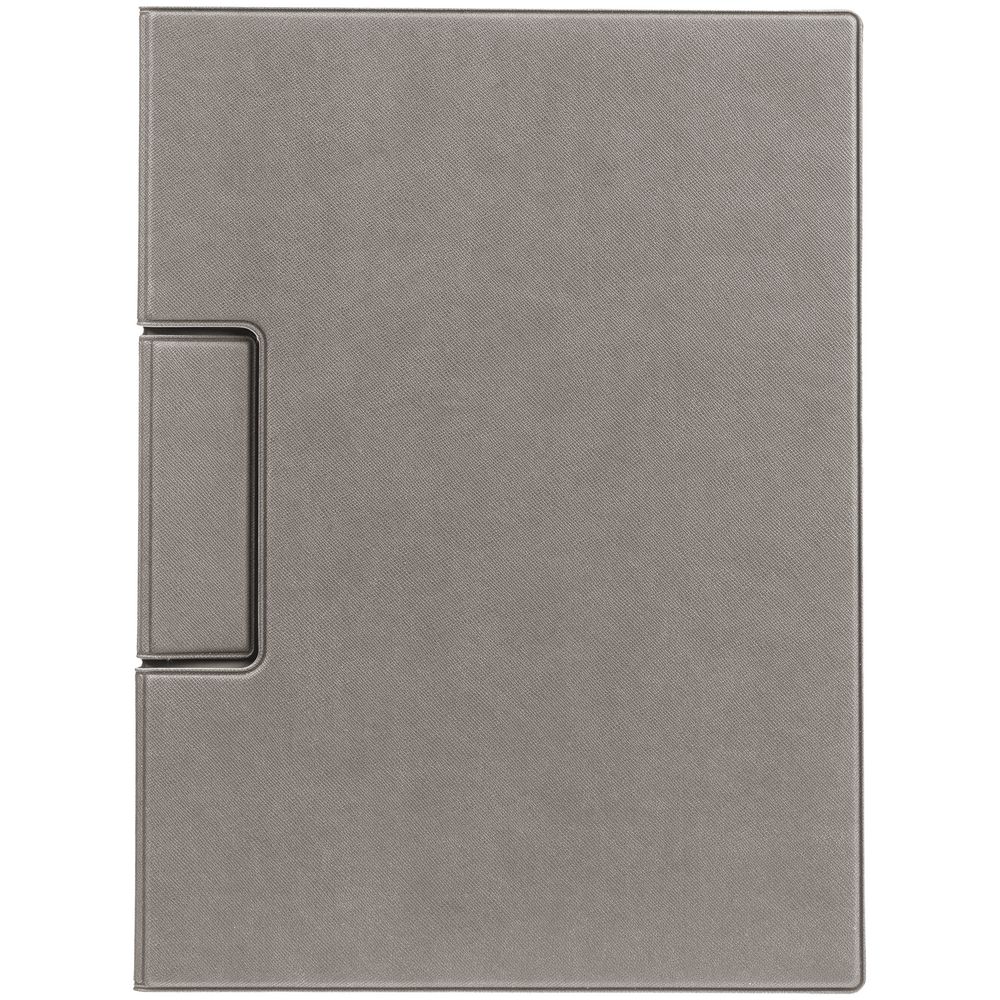 Папку можно использовать в стандартном вертикальном формате или перегнуть обложку и поставить в качестве таблички горизонтально. Магнитный клип удерживает до 10 листов.