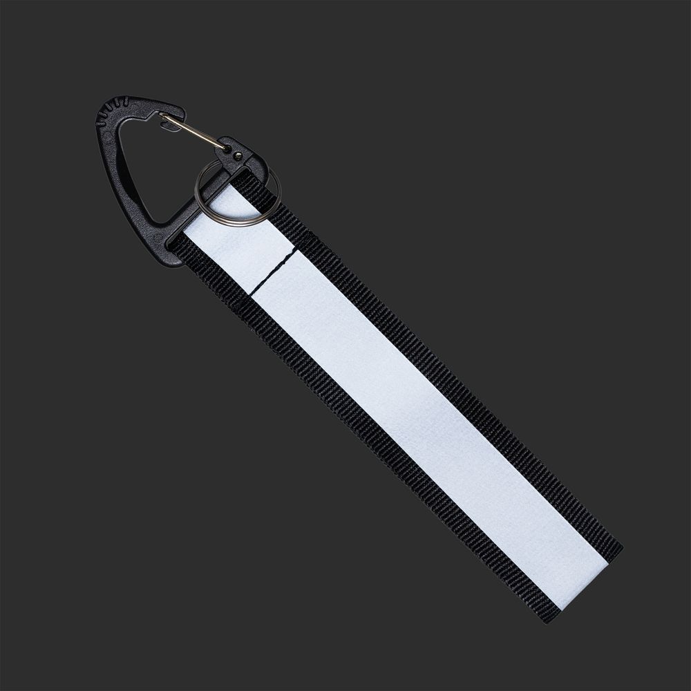 Светоотражающий брелок Flashline становится заметным в темное время суток при попадании света на центральную полосу.