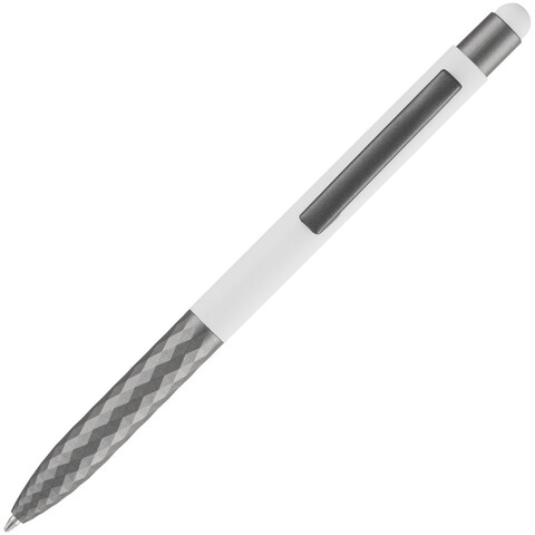 Шариковая ручка Digit Soft Touch привлекает внимание оригинальным дизайном нижней части пластикового корпуса и цветным наконечником-стилусом. Верхняя часть корпуса выполнена из алюминия с покрытием софт-тач — пишущий инструмент не хочется выпускать из рук.