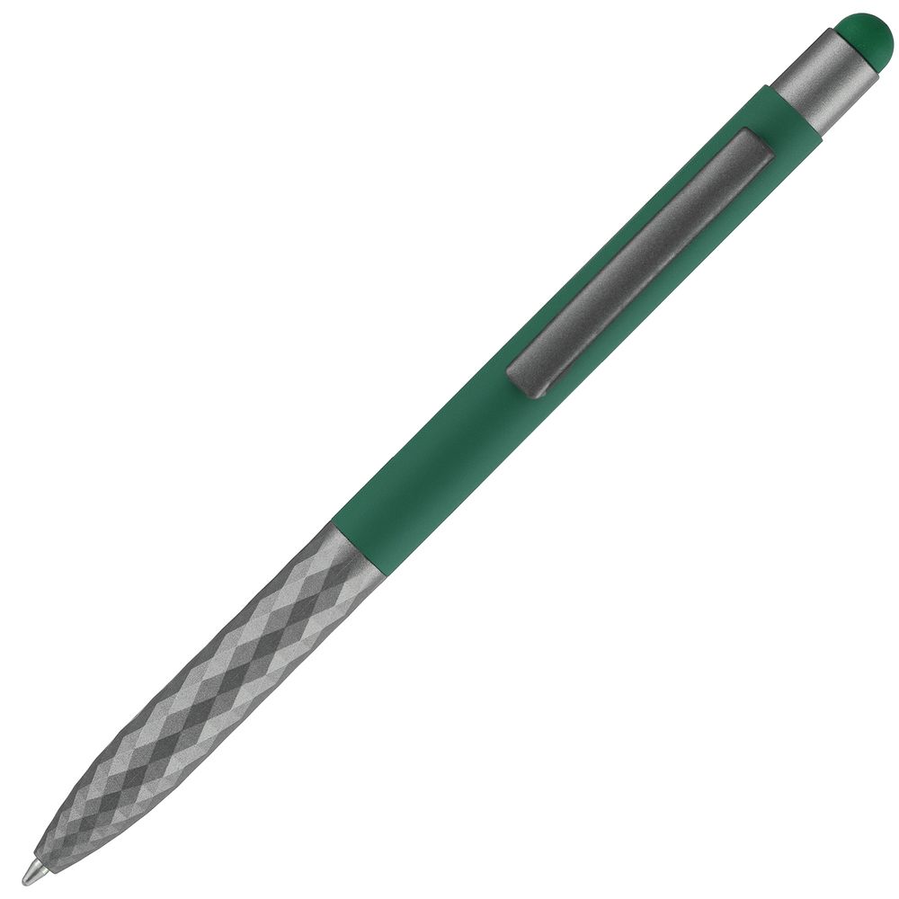 Шариковая ручка Digit Soft Touch привлекает внимание оригинальным дизайном нижней части пластикового корпуса и цветным наконечником-стилусом. Верхняя часть корпуса выполнена из алюминия с покрытием софт-тач — пишущий инструмент не хочется выпускать из рук.