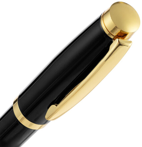 Классическая металлическая ручка с глянцевым корпусом и золотистыми деталями. Идеальный подарок для ценного сотрудника.
