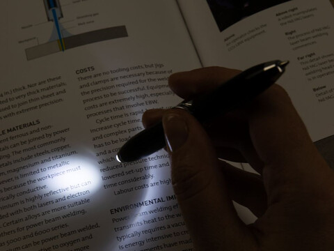 Ручка-спиннер оборудована небольшим фонариком на верхней части корпуса.