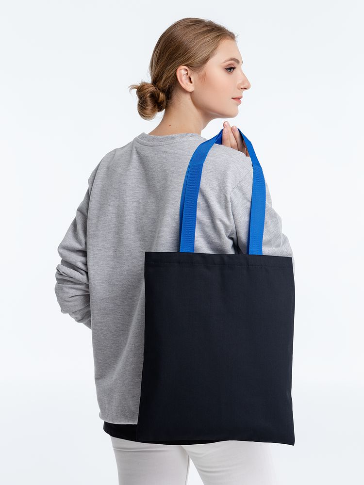 Минимальное количество для товара "Холщовая сумка BrighTone, черная с ярко-синими ручками" 5.
