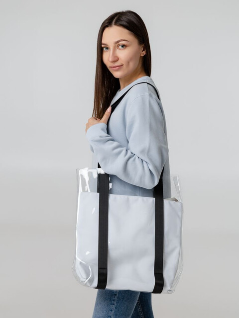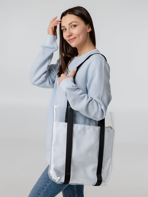 Шопер из ПВХ не промокает, легко чистится и выглядит стильно в любое время года и при любой погоде.