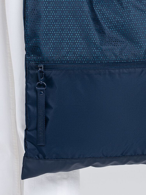 Цвет Outer Space лег в основу коллекции сумок Triangel, позволяя создать модное монохромное сочетание с изделиями Manevr темно-синего цвета. Изделия изготовлены из шелковистого полиэстера, в отделке использована лазерная перфорация паттерна.