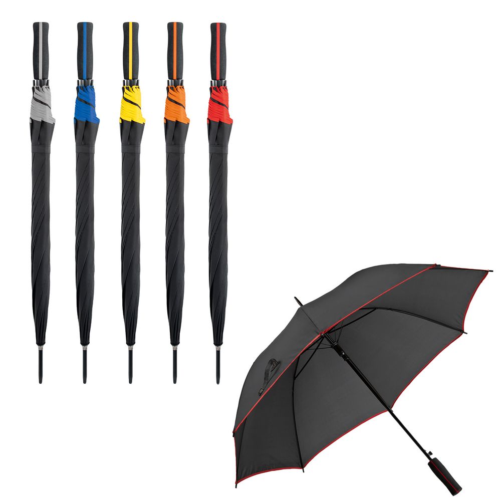 Зонт-трость с мягкой ручкой и цветными деталями на куполе и ручке. Зонт-полуавтомат, 8 спиц. Поставляется без чехла.