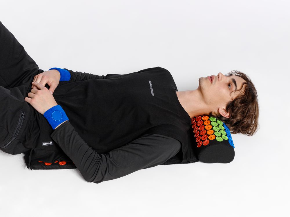 Массажный акупунктурный коврик с валиком Iglu — быстрая помощь при боли в спине и шее.