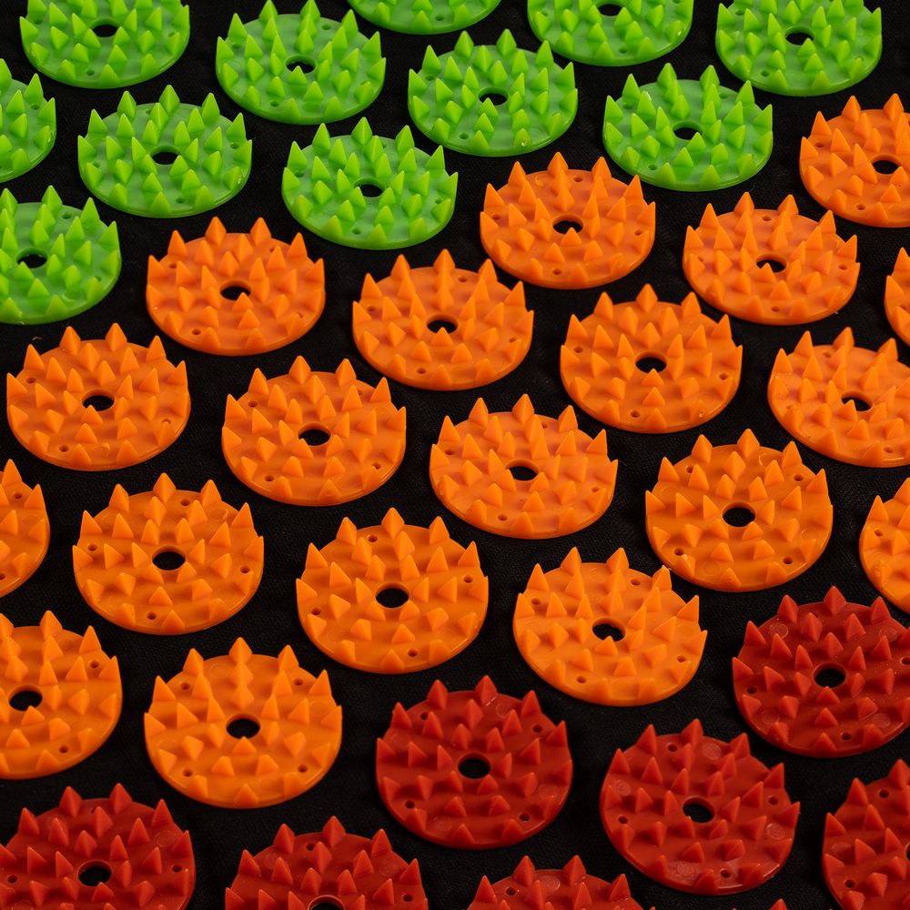 • На поверхности коврика расположены 230 массажных шипа, на подушке — 66;