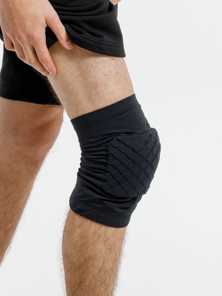 Мягкий вспененный пластик (ЭВА) пружинит, надежно защищая колено от ударов, а сотовая конструкция вставки не препятствует сгибанию ноги в колене.