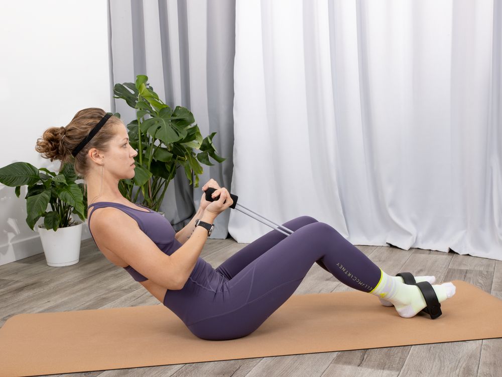 - Удобные прорезиненные ручки для рук и упоры для ступней;