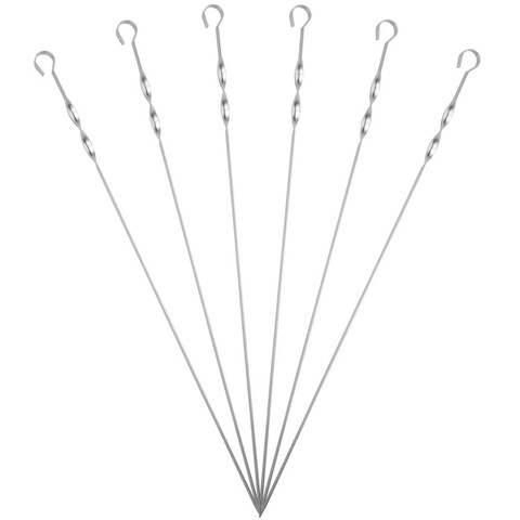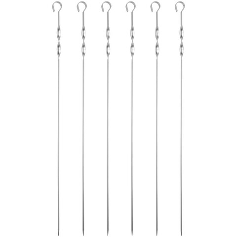 Длинные шампуры подходят для мангалов шириной до 40 см. Спираль у рукоятки позволяет фиксировать шампур при переворачивании шашлыка во время приготовления.